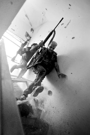 血腥 8月25日,利比亚反对派武装人员在的黎波里围剿卡扎菲部队武装人员。