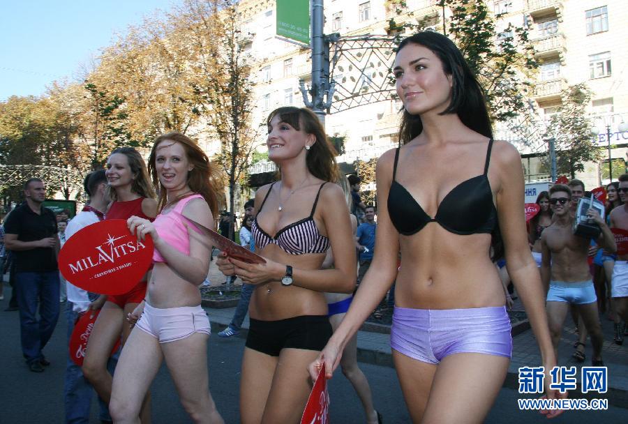 8月27日,在乌克兰首都基辅,乌克兰内衣模特在街头游行。当天,基辅为庆祝内衣节举行内衣模特游行,吸引众多路人驻足观看。据报道,这是该国第三次举办内衣模特街头游行活动。举办方希望通过此类活动展示现代潮流的年轻人以及街头游行带来的乐趣,并使这一活动成为一种文化元素,为基辅街头增添一道亮丽的风景线。