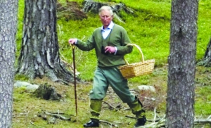 查尔斯近日被人看到在巴尔莫勒尔庄园附近慕克湖区的林中采摘野生的鸡油菌。当天,查尔斯身着便服,右手执手杖,左臂上挽着一只柳条篮。几位路人当时距离查尔斯只有15米左右,不过可能是他的这副打扮实在让人意想不到,几个路人根本没有注意到这位采菇大叔竟是威尔士亲王。