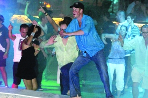 英国王室的“花花公子”哈里上周末又在欧洲一家著名夜店“大放光彩”:可能是由于兴奋过头,原本在舞池狂扭的他突然跳进旁边的游泳池,不过他似乎仍未尽兴,爬上游泳池继续跳舞。