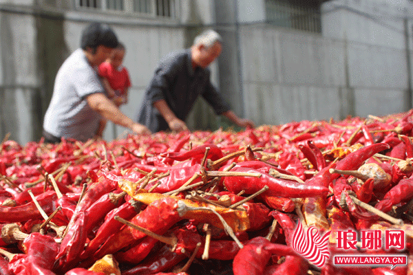 近年来,郯城县杨集镇把发展辣椒生产作为农业增效、农民增收的主导产业来抓,积极引进优良辣椒品种,推广间作套种增收模式。当地农村信用社积极提供信贷资金,扶持辣椒种植大户,推进辣椒规模化发展。目前,全镇辣椒面积已达1万余亩,亩创效益3000余元。图为杨集镇大滩村农民在晾晒红辣椒。