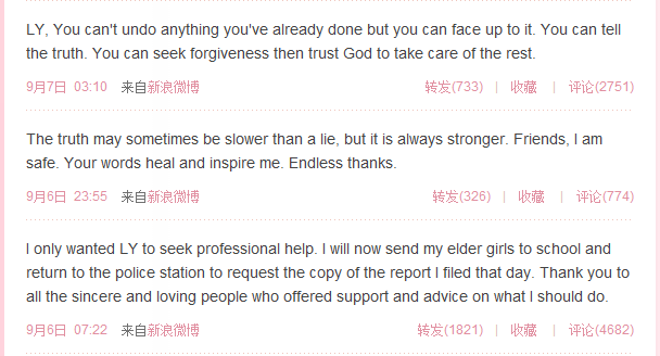 而在8月8日,家庭纠纷的味道已经从微博中散发出来,在转发“李阳疯狂英语”一条“父母的首要责任……欢迎参加疯狂英语第二节家长大学特训营”的微博时,“丽娜华的Mom”评论说,“李阳,你孩子需要你的家庭教育,假单亲的孩子真可怜,同意吗?”