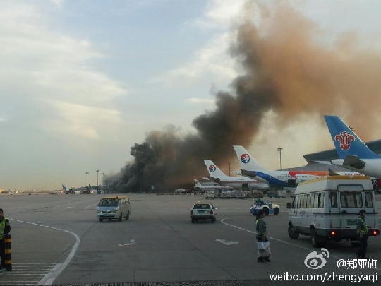图:9月17日17:49“@郑亚旗”发布微博:“北京机场二号航站楼刚刚着火,不知道是什么情况。希望没人受伤。”