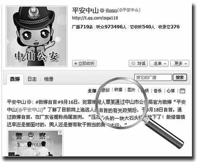“南方民间智库”发起人之一、知名网友“厦门浪”认为,公安微博已渐渐成为沟通警民关系的平台。“微博这种方式之所以好,就是因为它容易为大家所接受,在微博上,犯罪分子也能过得了自己的心理关;与此同时,公安用微博与群众沟通的过程中,也促进了自己管理作风、行为习惯和语言风格的转变。”“厦门浪”说。(记者贺林平)