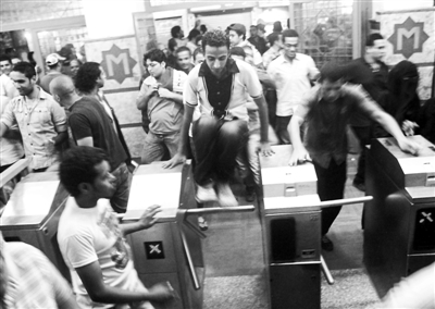 9月30日,埃及示威者前往国防部大厦时经过开罗的一个地铁站。