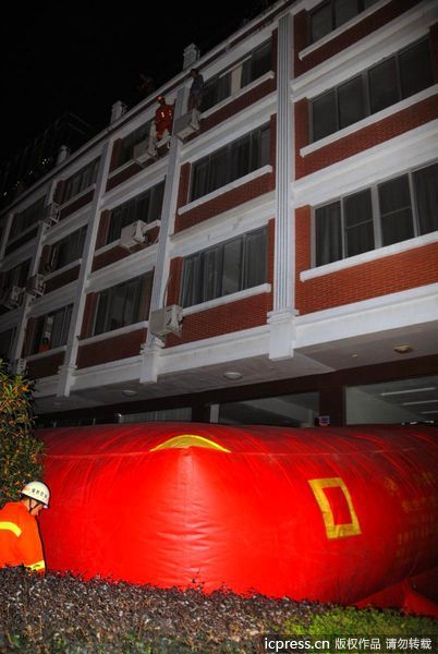 浙江温岭一陪酒女醉酒后欲跳楼 消防员救人