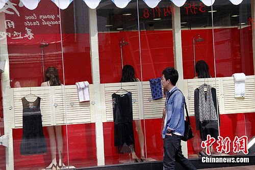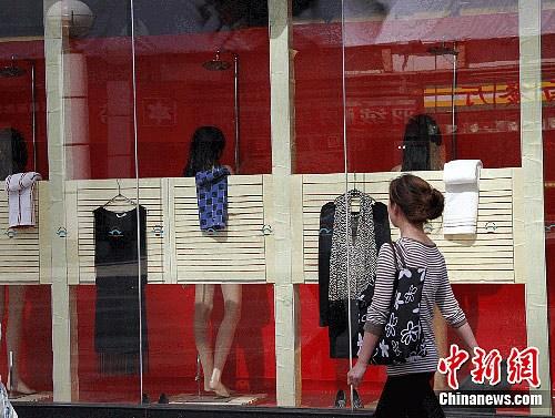 图为兰州一商场别出心裁,在橱窗内用“美人出浴”形式吸引路人。