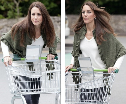 凯特婚后随威廉返回威尔士安格尔西岛。英国《每日邮报》刊登这名新王妃5日在韦特罗斯超市购物后推还手推车的一组照片。