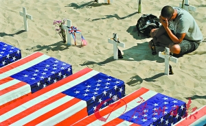 一名美军悼念在阿富汗死去的战友。 (资料照片)