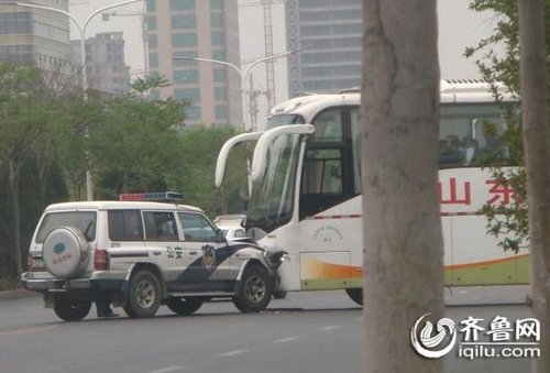 警车与大巴相撞