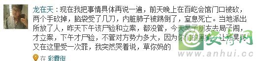 10月8日下午,吉林省实验中学高三学生吴天昊到体育场打球,与同在一个球场的长春二实验中学郝志鹏发生口角而打架。事后不久,郝志鹏的父母带领四十余人冲进球场殴打吴天昊,并砍掉吴天昊双手。9日上午10时,吴天昊因伤重不治身亡。其哥哥在人人网上发贴,希望能为弟弟讨回公道。发帖人声称是吴天昊哥哥,弟弟是吉林长春人,吉林省实验高中高三的学生吴天昊,肇事者是长春二实验中学的郝志鹏,带人打其弟弟的郝志鹏他妈妈叫杜夏娟,他爸爸叫郝升山,是开煤矿的。他爸爸当时说“我家有的是钱,打残你我能摆平,新来的公安局长我也能摆平,就是打你”。网友看了愤怒至极,此贴在猫扑人人网新浪微博已被很多人转发。
