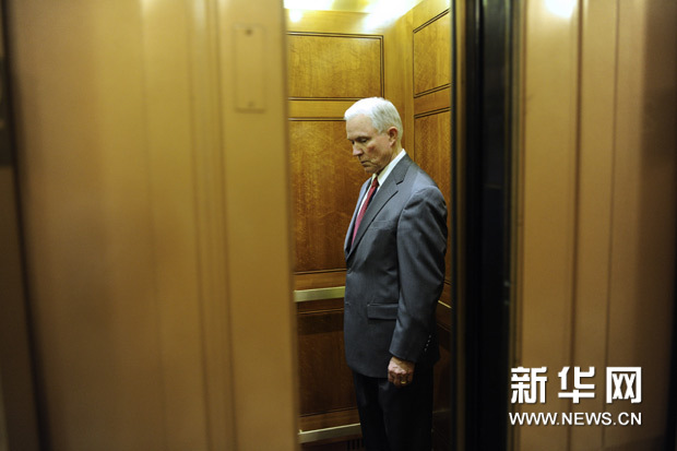 10月11日,在美国首都华盛顿国会参议院,美国参议员、货币汇率法案推动者之一杰夫·塞申斯投票后乘电梯离开。新华社记者 张军 摄