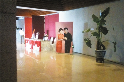 昨日,国家博物馆5层摆放着一对新人的照片,一场私人婚礼在此举行