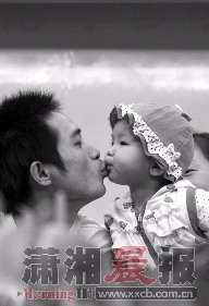 18日下午,湘雅二医院,小梦亲吻了爸爸。