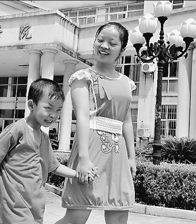 因为父母无力照顾年幼的弟弟,今年年初,何平咬咬牙,把弟弟何君带到了学校,一边读书一边照料。何平的班主任李晓韵记得很清楚,第一次见到何君,“他瘦得皮包骨,怯怯地躲在姐姐身后,怎么哄都不讲话。”在学院老师的帮助下,何君入读学校附小,为了让弟弟学习不掉队,何平每晚帮他补课直到深夜。