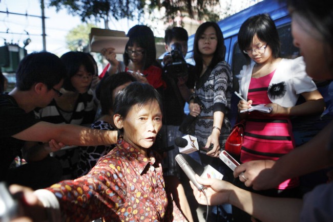 2011年10月17日,广东佛山,在村口榕树下被媒体围观中的陈贤妹。
