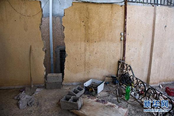 这是10月25日拍摄的卡扎菲被捕前在苏尔特藏身院子里的逃生通道。新华社记者李木子摄