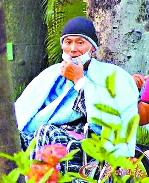 上周六外佣推他坐轮椅外出,整个人瘦了一圈,右边手脚都无法移动,为怕人发现,他戴着口罩,以针织帽遮住伤疤,记者致电其经纪人Eva,对方却称已康复出院。(鱼)