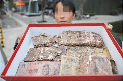 10月27日下午,女婿陈先生带着妻子和弟弟小马到郑东新区CBD附近的中国银行和中国工商银行咨询。人家看了他们装在盒子里的8万元如同豆腐渣,都觉得挺不好办。