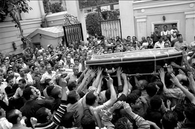 9日,在埃及首都开罗,人们为一名在冲突中死亡的科普特基督徒举行葬礼。新华社发