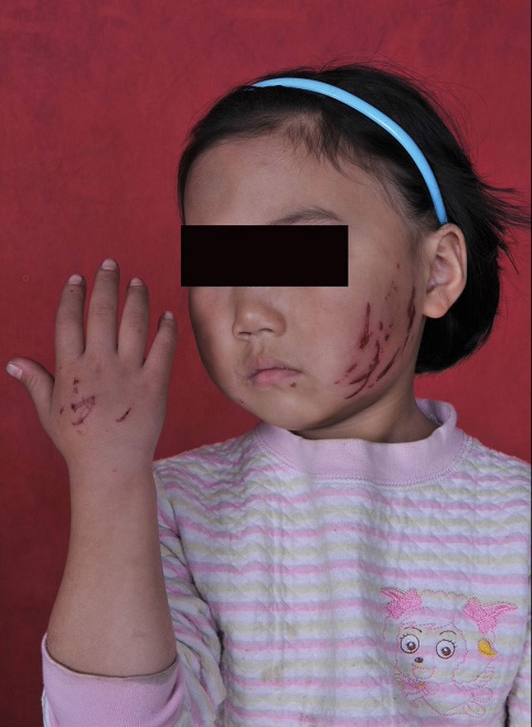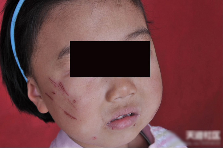 小学老师将一年级女生抓得面目全非