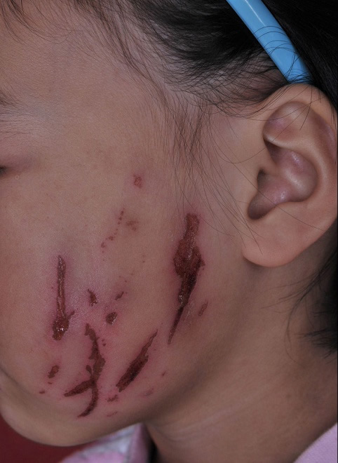 小女孩已经面目全非。
