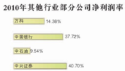 2010年,这家公司净利润率43.42%。对比一下其他行业,2010年,万科净利润率14.36%,中国银行净利润率37.72%,中石油净利润率9.54%,中兴证券40.70%。