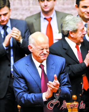 帕潘德里欧领导的泛希腊社会主义运动5日凌晨以153票支持、145票反对、2票弃权的结果赢得议会信任投票。