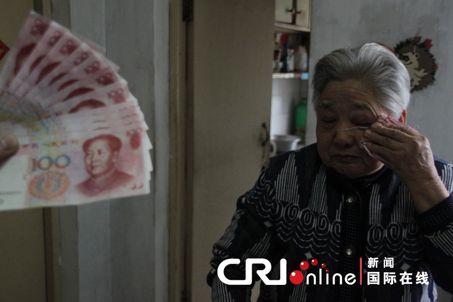 “当着小区很多邻居,我老脸丢尽了。”2011年11月4日,中储石家庄公司退休职工任锡禄向居住小区物业缴纳取暖费时,对方告知其持有的11张百元大钞全部为假币。6日老人见到记者诉苦说,自己80岁高龄,第一次遭遇此类事件。他愿以62年的老党龄向记者担保,这些钱都是11月1日从中国邮政储蓄银行石家庄市市庄支行支取的。老任成为石家庄近期出现的第四位,在领取退休金时遭遇批量假币的老人。图为2011年11月06日,河北省石家庄市,11张百元养老钱变成了假币,让这个并不富裕的家庭犹如雪上加霜。图片来源:CFP