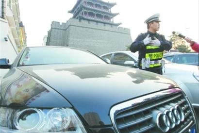 前日早7时30分许,沈阳市公安局大东交警大队民警刘城在北顺城路广宜街岗执勤,此时迎面开过来一辆牌照为辽A91B96的黑色奥迪轿车,刘城发现,该辆车前风挡没有按规定张贴保险和检车标识,立即示意司机停车接受检查,司机停车后,从副驾驶位置上接过一名女子的驾照递给刘城,刘城再一次要求男子出示驾照,男子始终不拿。