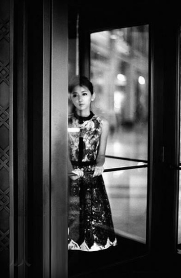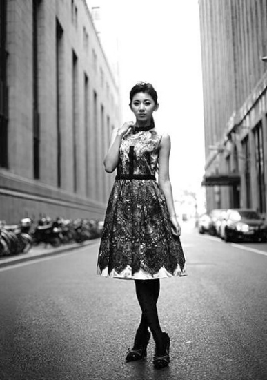 闫凤娇为杂志拍的一组照片,身着曼妙长裙在都市中