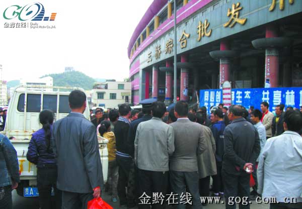在三桥农贸综合批发市场门口,因扣押餐车发生争执