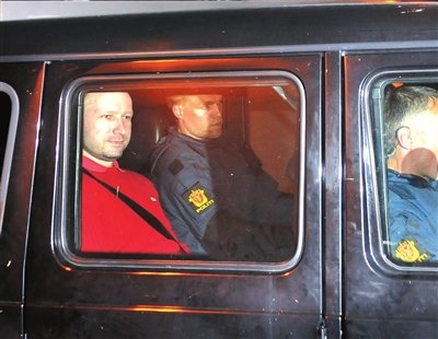 布雷维克当天穿白衬衫,着深色西服,系浅蓝色领带,在警察护卫下进入挪威首都奥斯陆一家法庭。