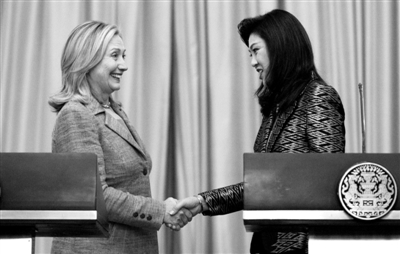 16日,正在访问泰国的美国国务卿希拉里与泰国总理英拉会晤。美军战舰当天抵达泰国帮助救灾。