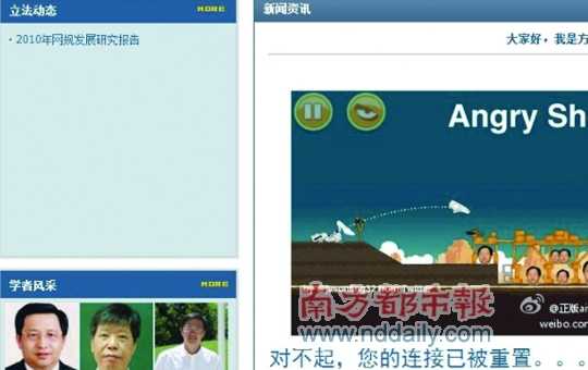 南都讯记者张书舟 11月18日,北京邮电大学互联网治理与法律研究中心的网站遭遇黑客攻击,网站页面被篡改为了一个类似于“愤怒的小鸟”的游戏,只不过“愤怒的小鸟”游戏中的目标被换成了北邮校长方滨兴的头像,武器也由小鸟变成了鞋子。这个游戏被起名为“AngryShoes”(愤怒鞋子)。