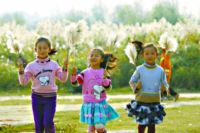 昨日下午,江滩三阳路广场成为欢乐场。长期在江滩锻炼的市民,组织50人的欢乐锣鼓队助兴。一群来自美术培训班的小学生,在芦苇丛中玩耍一番后,画出各种形态的人与芦苇共舞。