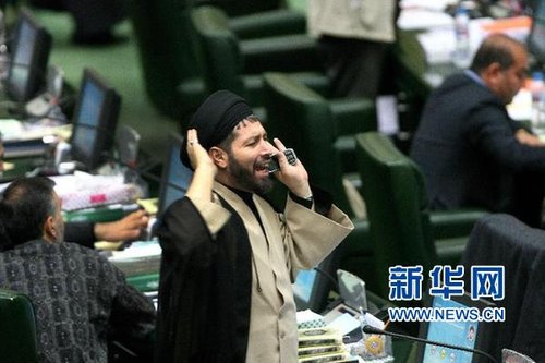 11月27日,在伊朗首都德黑兰,一些议员在议会会议上起立并高呼反对英国的口号。新华社发(艾哈迈德·哈拉比萨兹摄)