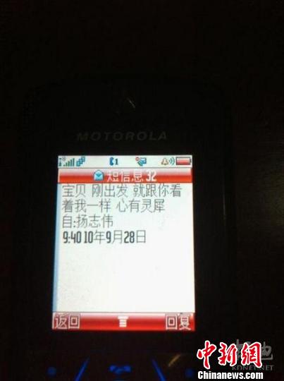 举报人还列举了“杨志伟”在和自己交往期间所发的短信。如2010年9月份就有四条:“只喝了一杯红酒,宝宝”;“宝贝,就跟你看着我一样,心有灵犀”;“真想你,尤其是今天这个夜晚”;“刚吃饭,领导们还在吃,我正拿出手机准备给你发信息,就收到你的信息,想你”等等,态度暖昧。