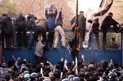 2011年11月29日,伊朗德黑兰,数百名伊朗学生对英国驻伊朗大使馆发起冲击。