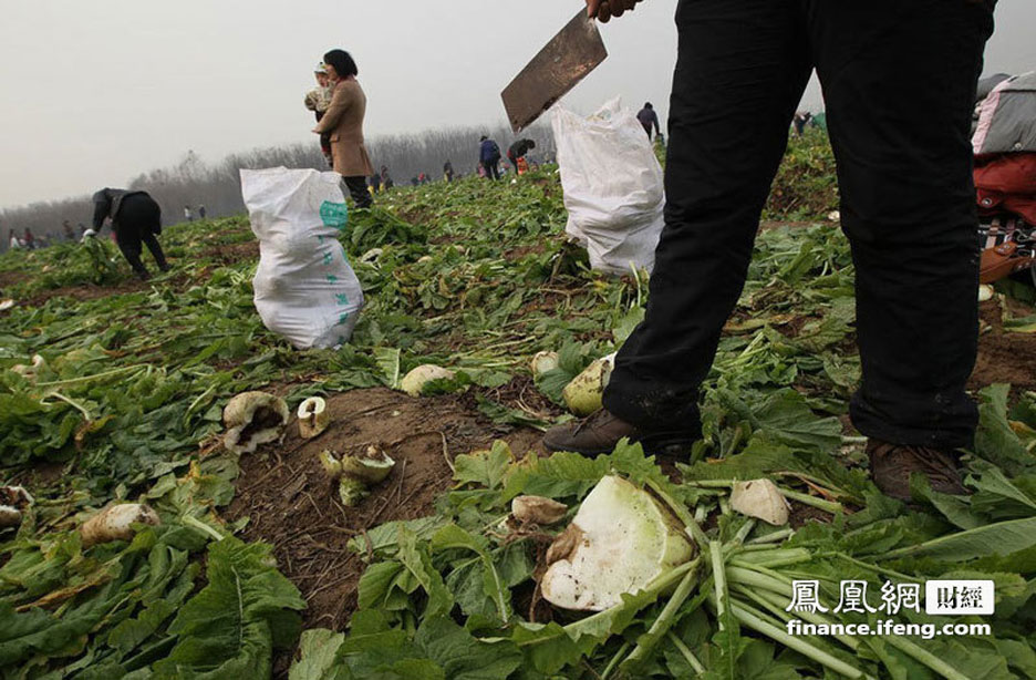 2011年11月25日,河南郑州,滑县农民韩岗的80多亩萝卜滞销。他决定免费赠送给市民食用。媒体刊登消息后,引来三万人拔萝卜,菜农的萝卜被拔光了,种的红薯竟然也被偷挖走2万斤。几天来,韩岗家损失了数万元。