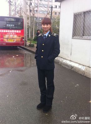 穿着公交制服也掩饰不住她的美丽,大眼睛、齐刘海、染过的长发高高盘起,画着淡妆,让人不由得称赞“不折不扣的美女”。