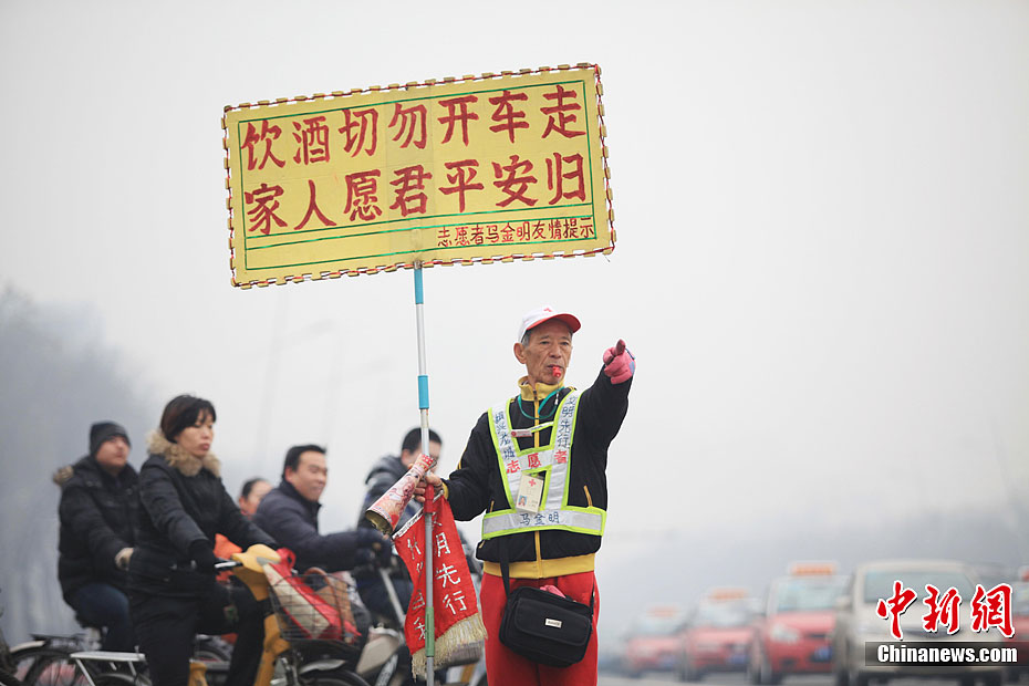 大雾中疏导交通的太原“最美老翁”