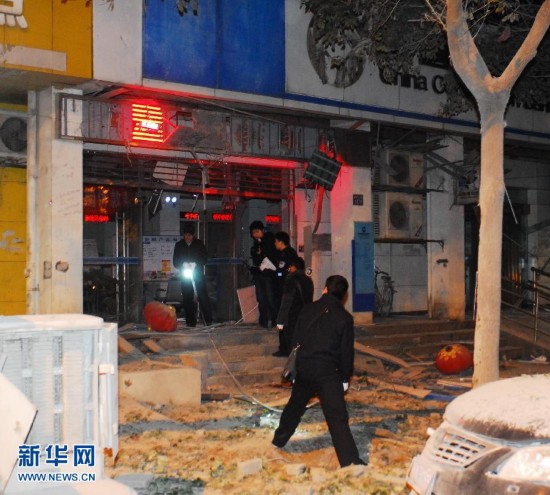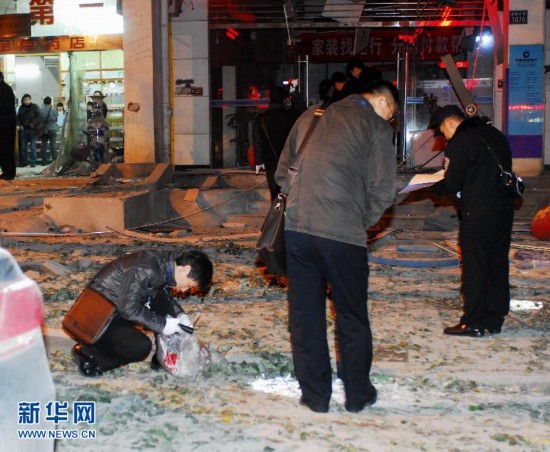 12月1日,公安人员正在对现场进行勘察。当日17时30分左右,武汉市雄楚大街关山中学旁的建设银行发生爆炸。目击者称现场有伤者躺在地上。据武汉市警方介绍,经过初步现场勘察,已经排除管道煤气和液化气爆炸的可能。目前,爆炸受伤人员已经被送往附近医院救治。武汉警方调集特警、刑侦、技侦人员等对现场展开全面调查。新华社记者肖艺九 摄