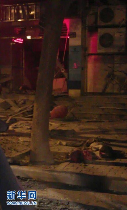 12月1日下午,武汉市雄楚大街关山中学旁的一家银行发生爆炸。目击者称现场有6名伤者躺在地上。这是爆炸现场照片(手机拍摄)。新华社发(网友贺祺h 摄)