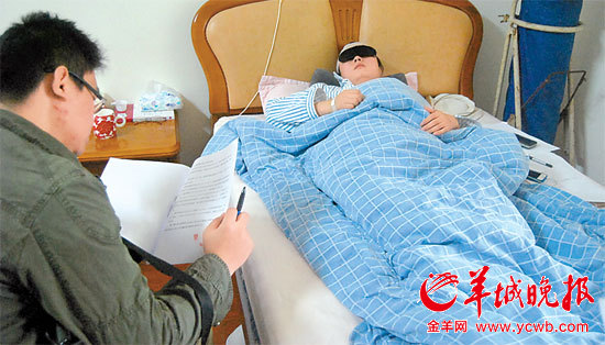 廖爱敏律师躺在病床上