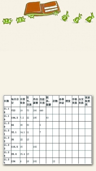 每日详细记账,似乎是老人们的事。但南京网友“性感的小马甲”,在收入挺高但每月不知钱花哪去了的情况下,决定记账。不过,她的账本是自己设计的表格,非常精细。连记16天后,她开始在西祠胡同发帖晒账单。她发现自己平时零零碎碎花的钱,竟然远远超过自己的工资,于是深感“压力很大”。此帖在网上引起众多网友围观,大家纷纷分享自己的记账经历。