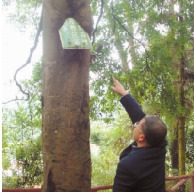炎陵湘山公园一大树“活吞”宣传牌 成为一道奇观
