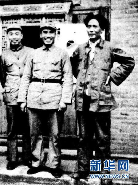 这是经过长征到达陕北后的毛泽东、朱德、周恩来(资料照片)。 新华社发