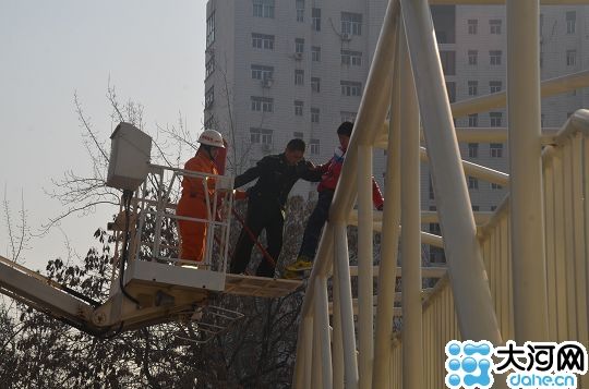 12月12日,十二时四十分许,位于焦作人民医院门口天桥顶有一名姓杨的男子要跳楼。救援人员赶往事故现场后,看见一男子坐在天桥顶的钢架上,情绪很不稳定,欲有寻死念头。据跳楼着透露说因为自己想要做变性手术又没钱、也得不到家人的同意与支持,于是一时想不开,想要用这种方式解决问题,救援人员深入了解后,对跳楼者认真的进行着思想工作。