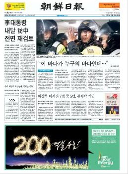 《朝鲜日报》在13日的头版头条刊登了题为《李明博总统或推迟下月访华日程》的文章。文章中称,作为针对中国渔民杀害韩国海警事件采取的综合对策之一,韩国政府正在考虑推迟李明博总统原定于明年一月对中国进行的国事访问。文章中还说,“如果任由事态发展,不仅会对中韩关系造成恶劣影响,而且还不可避免地会降低韩国民众对于政府的信任。”